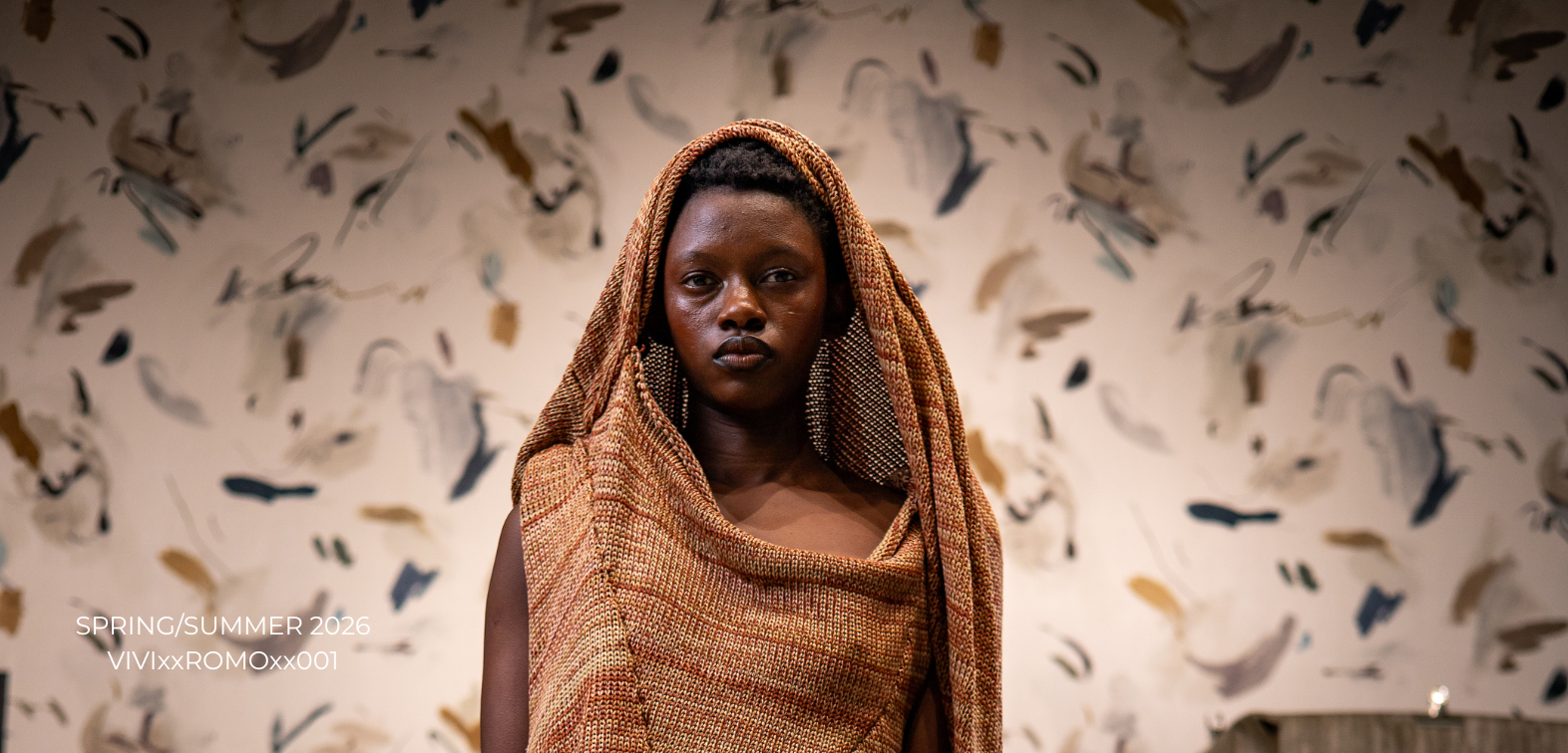 Introducing VIVIxxROMOxx001, a capsule within our greater SS26 “SCARAB” collection, this philosophy finds new form through the use of ROMO heritage textiles reimagined as sculptural, wearable art by VIVIERS.