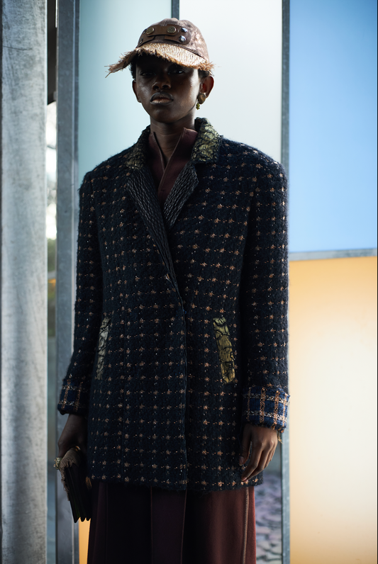 Tannie Elsa's Floral Curtain' Jacket in Deadstock Synthetic with Raw Silk Lapels & Hand-beaded broochesRegular price R 48,900.00 ZARRegular priceUnit price / per-