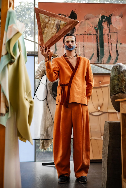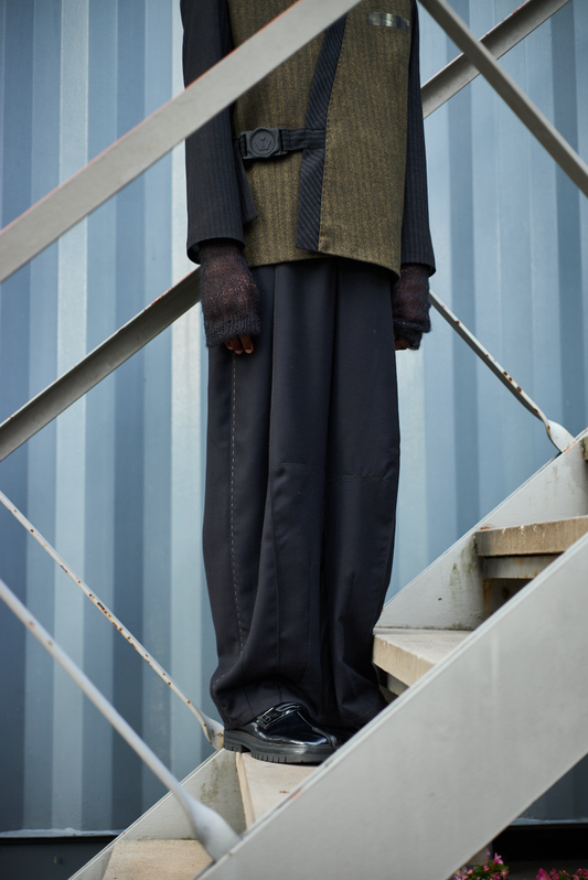 100% South African Black Stripe Merino Wool Shabori Signature Pants