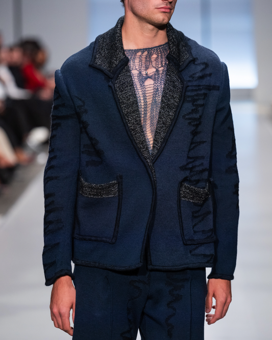 Navy Unstructured Wool Mohair Lurex Trapeze Tailored Jacket