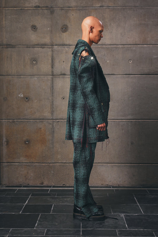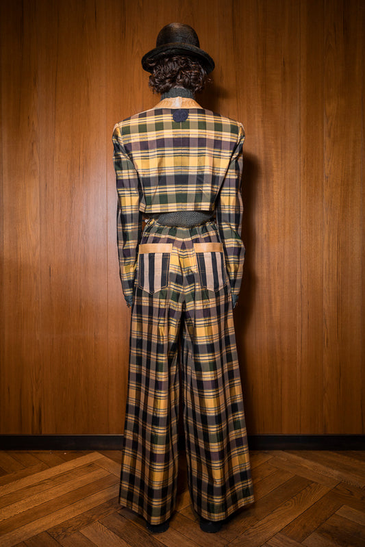 Check Silk Taffeta Trapeze Pants with Ostrich Shin details