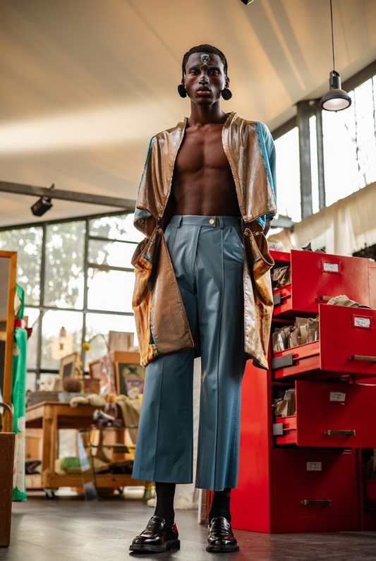 PURE NAPA LEATHER STRAIGHT CUT PANTS IN RETRO BLUE