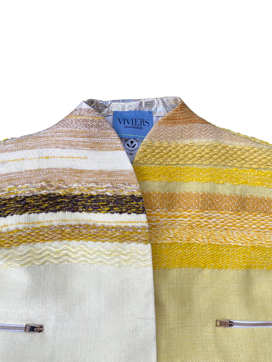 Artisanal Hand-Woven 'Sunny Scene' Cropped Jacket in Wool, Mohair & Viscose