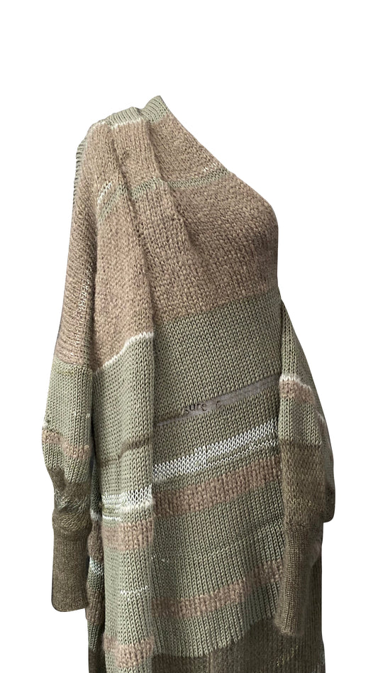 Artisanal Green Asymmetrical Knitted Dress in Silk, Mohair & Wool