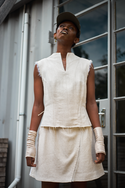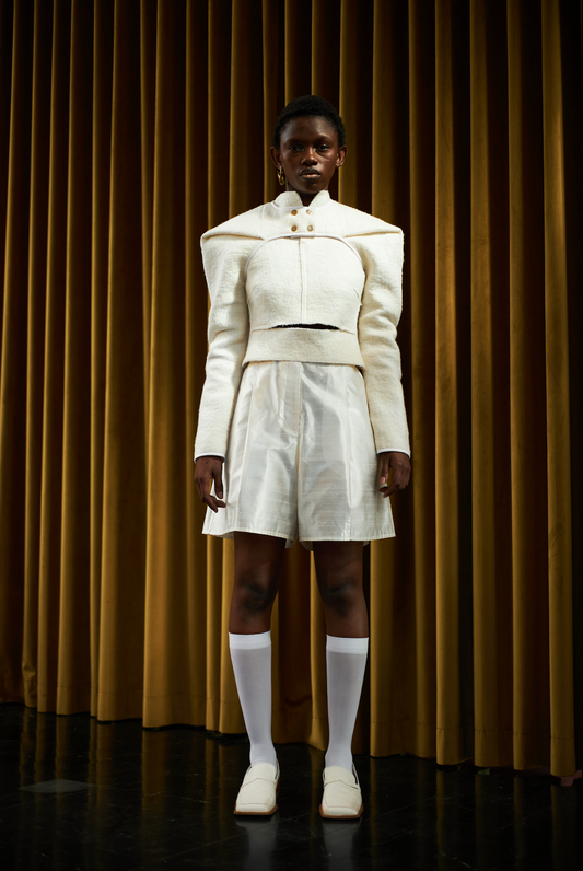 Vintage Reclaimed Off White Silk Lamé Cropped Cocoon Shirt