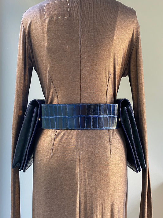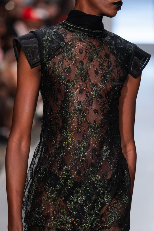 Vintage Black Green Lace Metallic Long Polo Neck Dress