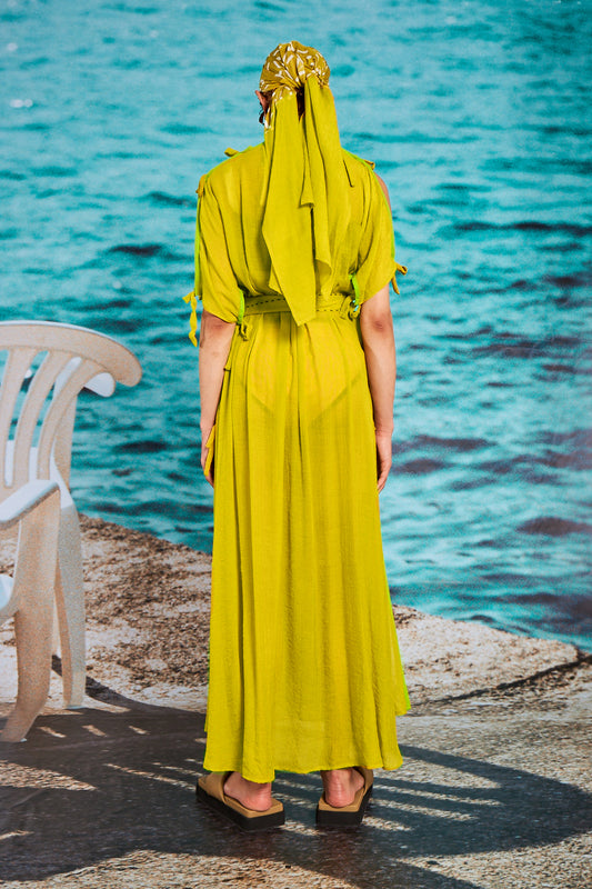 Signature Silk Lamé 'Sunset' Wrap Dress with Hand-Embroidery Stitches
