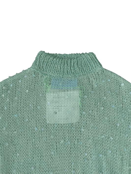 Sky Artisanal Mohair T-shirt with Hand-beaded Sequins Details