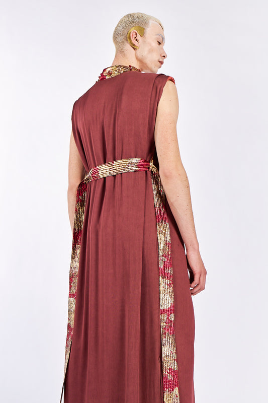 Crystal Encrusted Silk-crepe & Satin Robe with Hand-beaded Lamé Collars