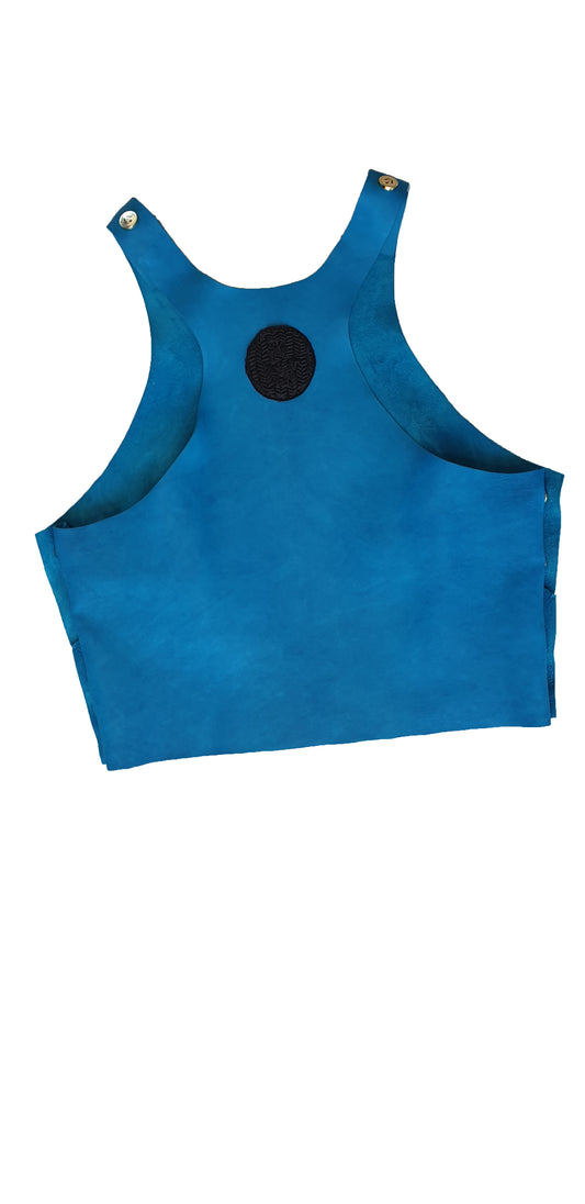 Blue Nappa Leather Racy Bolt Top With Adjustable Shoulder Strap
