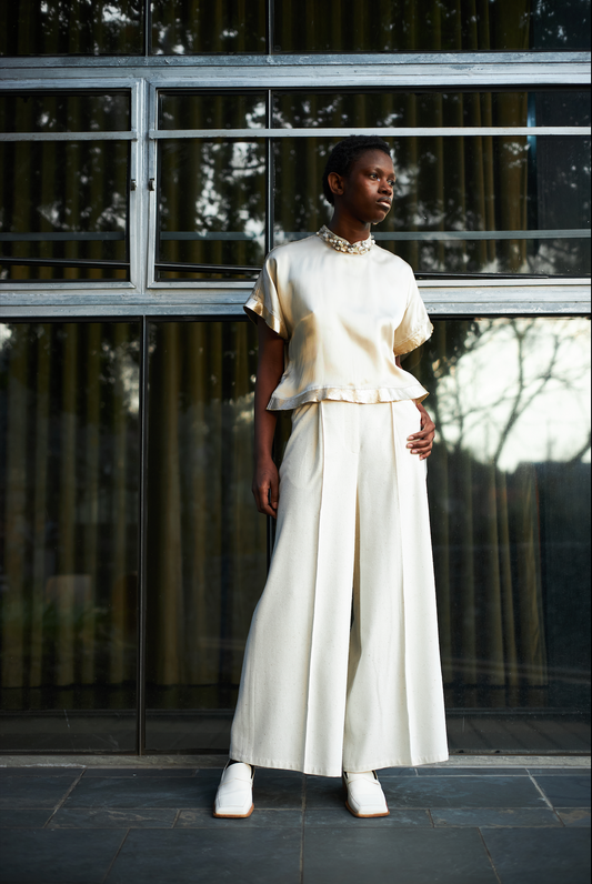 Wide-Leg Silk Trousers With an Elasticated Waistband