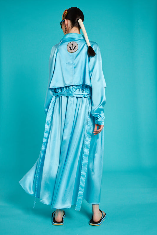 Champagne Qipao Top in Reclaimed Acetate Satin with Beaded Collar