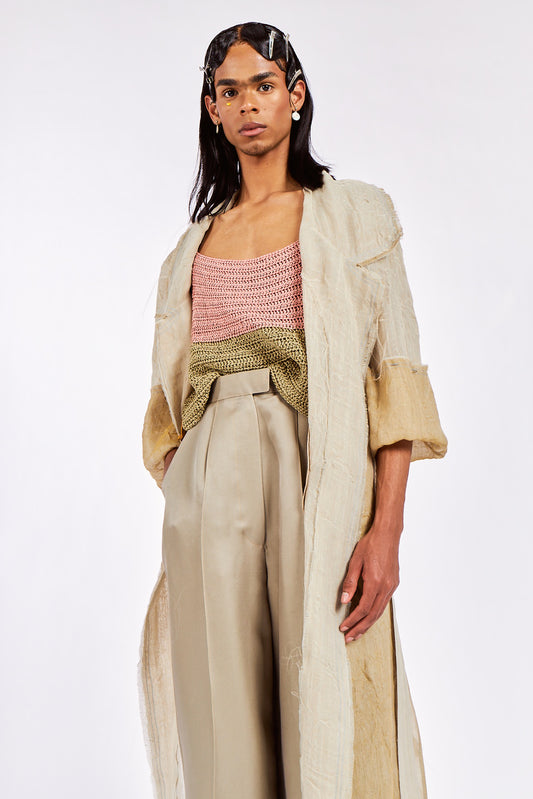 Karoo Dust, Deadstock Raw Silk Pencil Skirt with Contoured Details.