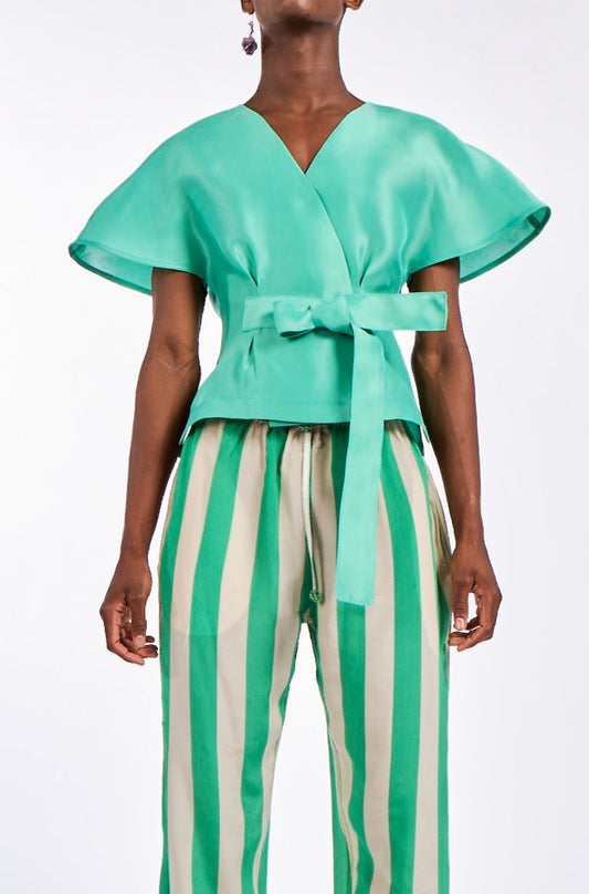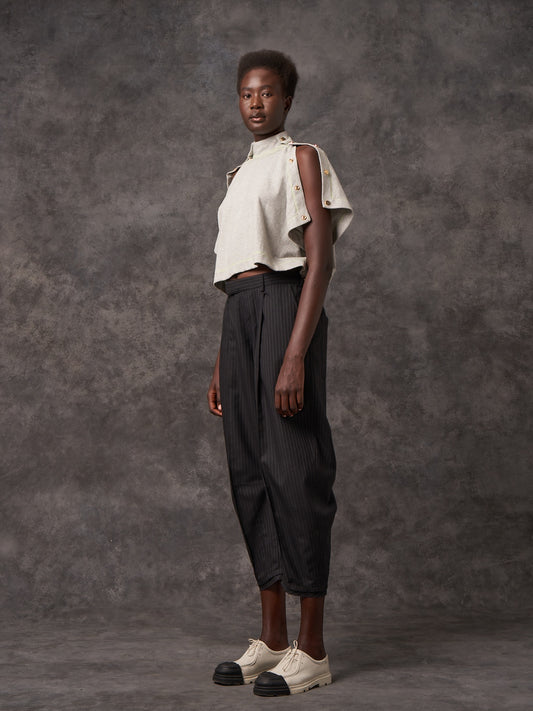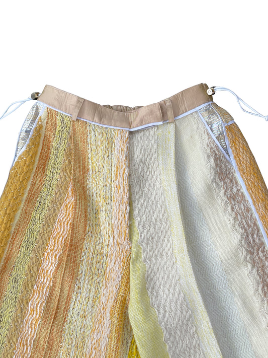 Artisanal Hand-Woven 'Sunny Scene' 3/4 Signature pants in Wool, Mohair & Viscose
