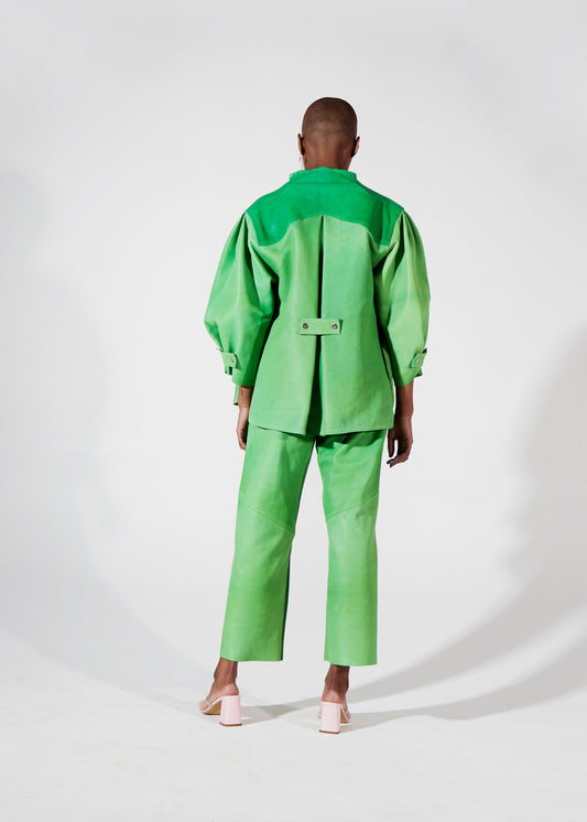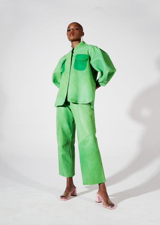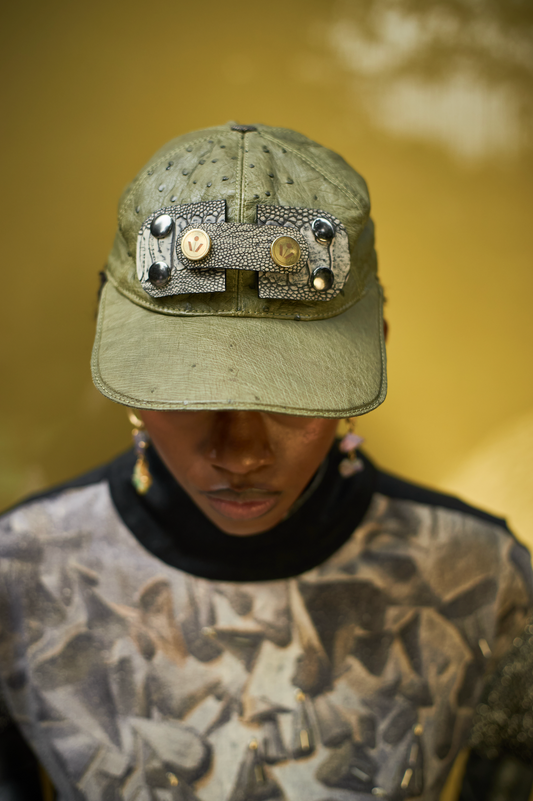 Moldavite Green Ostrich Leather Cap with Ostrich Shin Tabs