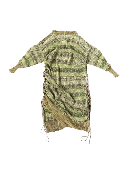 Green Moss Knitted Draped Dress with Drawstrings in Mohair, Wool & Viscose Blend