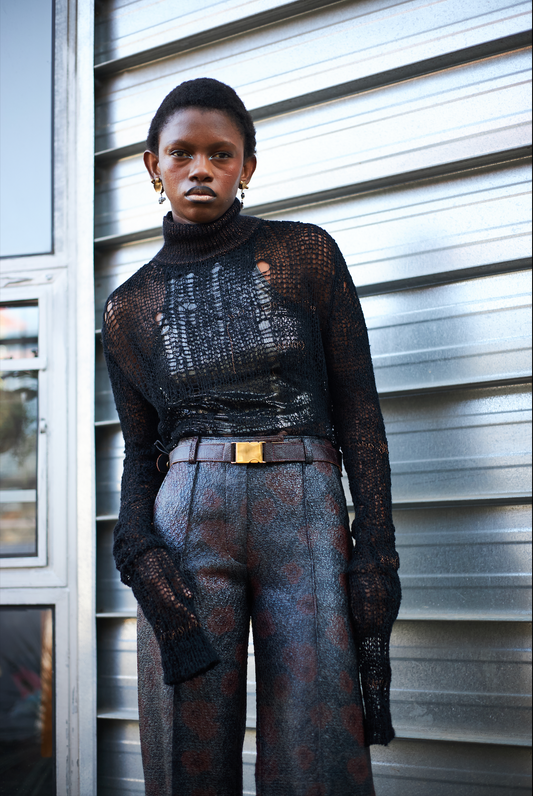 Obsidian Poloneck Jumper in Wool and Vintage Lurex