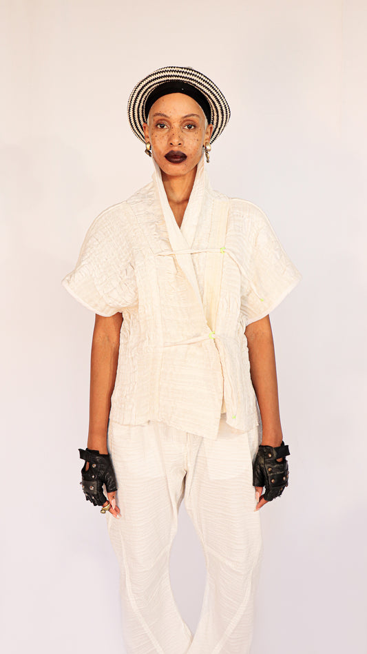 Sold outShrunken Plissé Kimono Wrap Top