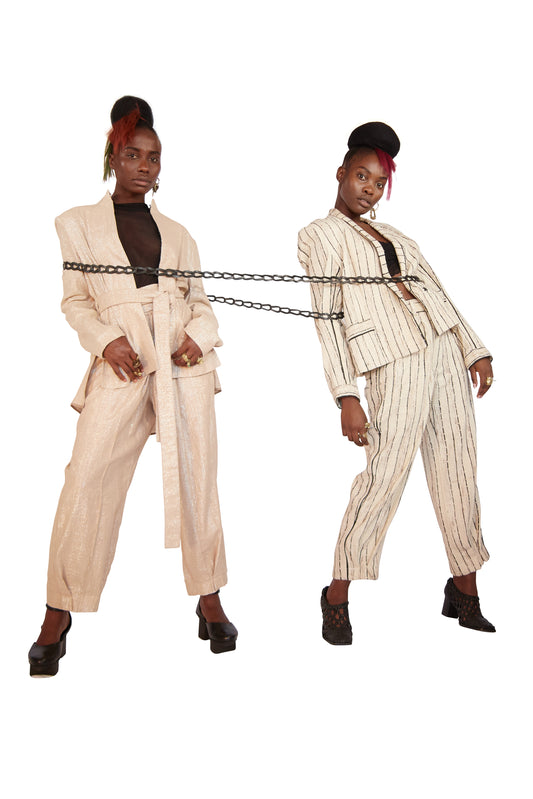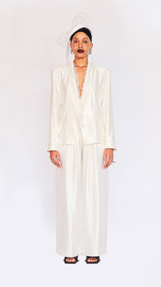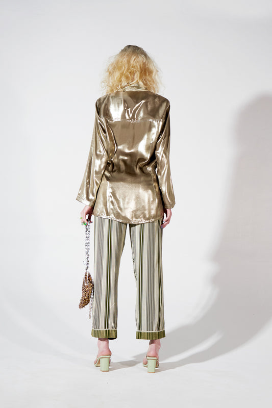 TWINKLE RAW SILK LAMÉ TAILORED PANTS