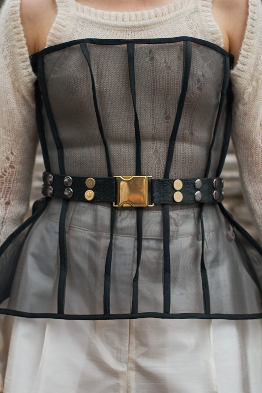 Black Ostrich Shin and Studded Belt with Napa Leather Back