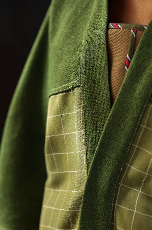 Hand Sewn Checks in Cotton Raglan Kimono Jacket