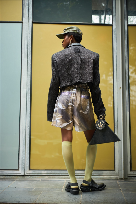 Volcanic Rock Cropped Double Breasted Shirt in Bovine Leather
