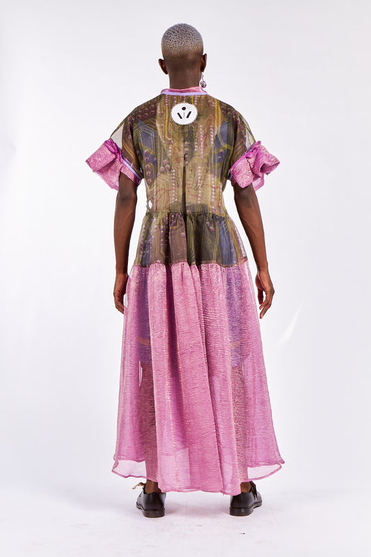 Disclosure Printed 100% Nylon Zibbon A-Line Dress With Zip Hem