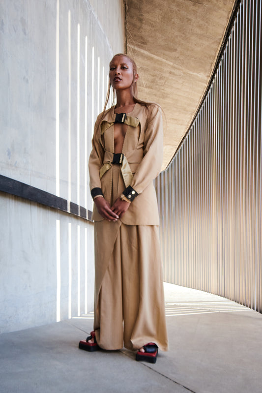 Cape Tweed Loomed Taupe Trapeze Tailored Jacket