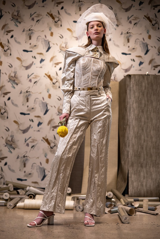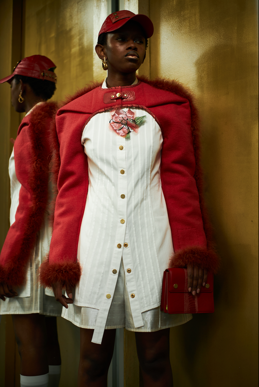 Ecru Reclaimed Silk Tailored Umbrella Dress