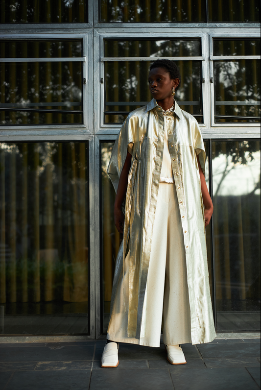 Botanical Dyed Champagne Cocoon Shirt Dress