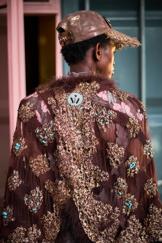 Hand-Felted Lace with Maribou Feathers and Hand-Beaded Shawl