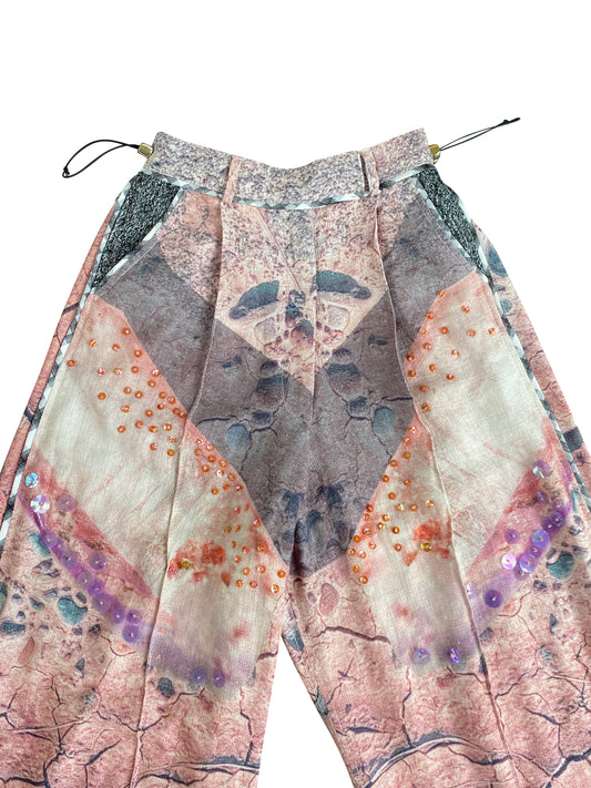 'Desert Rose Soil' Hand-Beaded Signature Pants With Original 'Viviers' Print in Deadstock Cotton