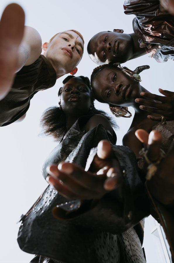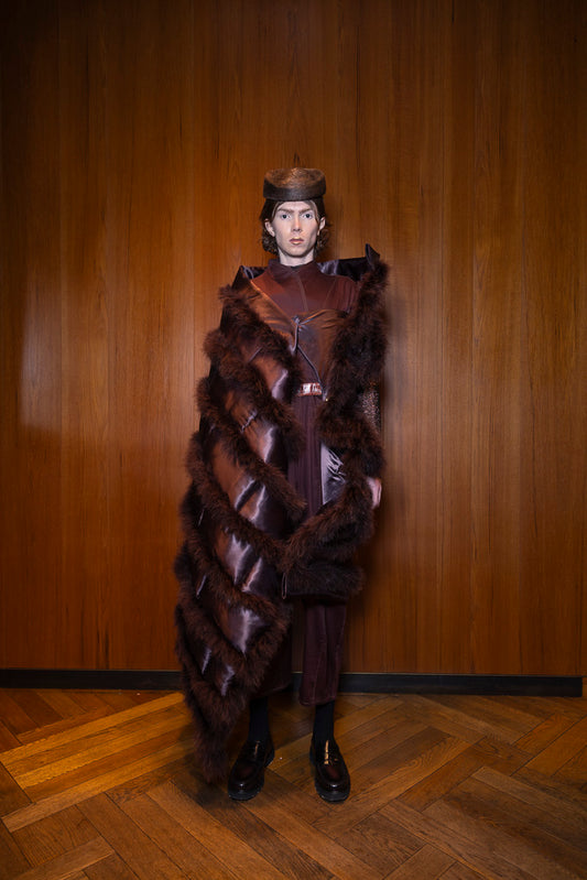 Wet Dust Tailored Wool Arched-Leg Pants with Ostrich leather Shin Details - Made To Order