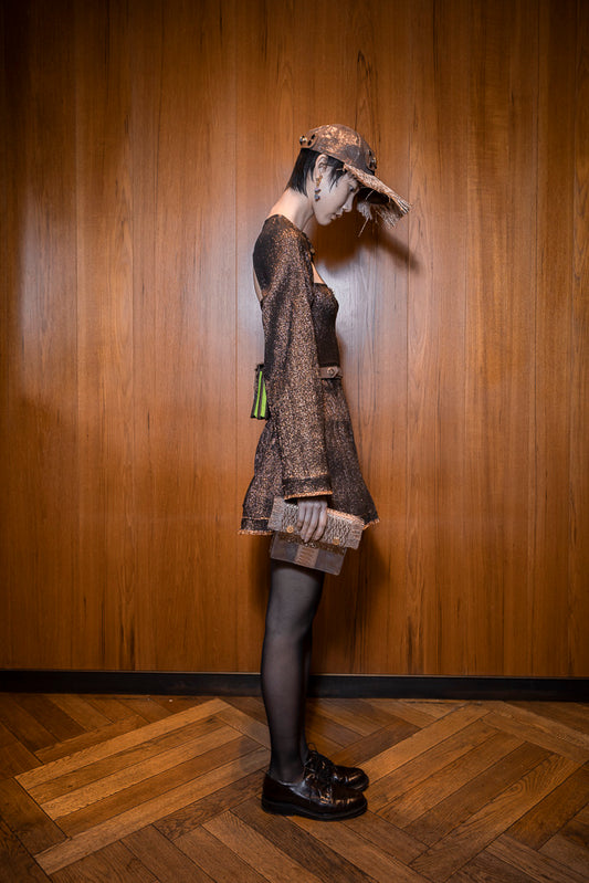 New Age Copper Stretch Lurex Sculpted Harness Dress