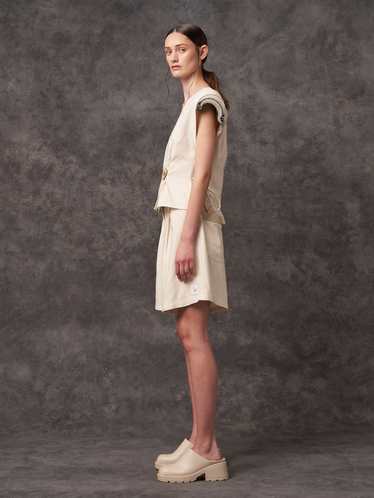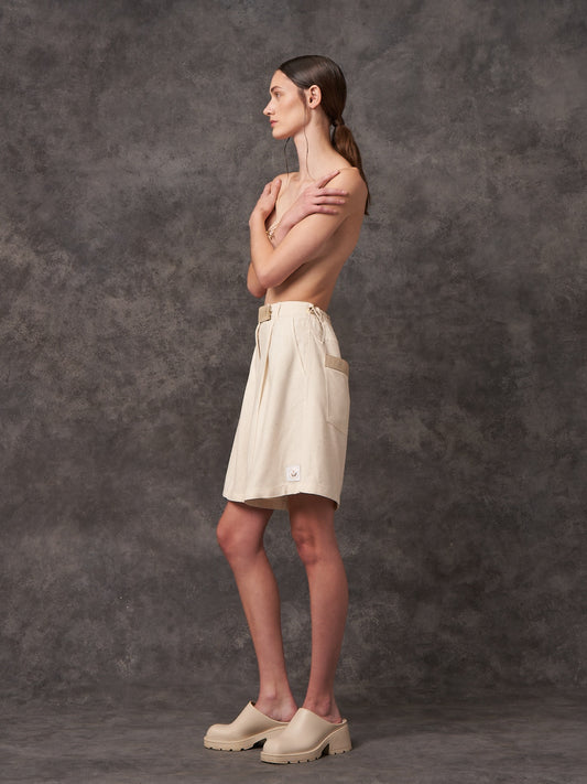Ecru Reclaimed Silk Sculpted Signature Shorts