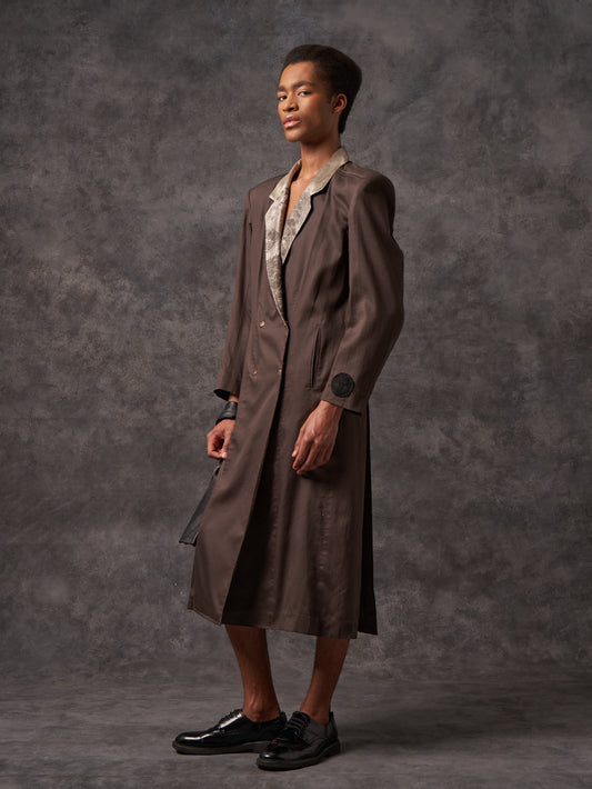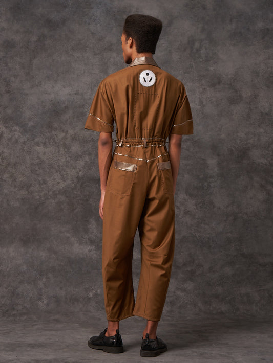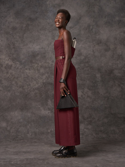 Maroon Silk Cotton Signature Jumpsuit with Ostrich Shin detail