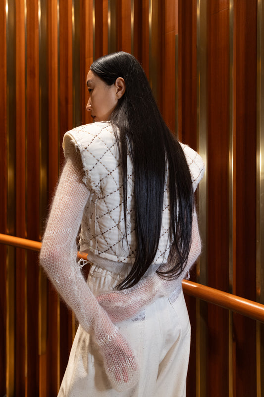 Upcycled Georgette Pure Merinowool Tops/Batting Cropped Gilet