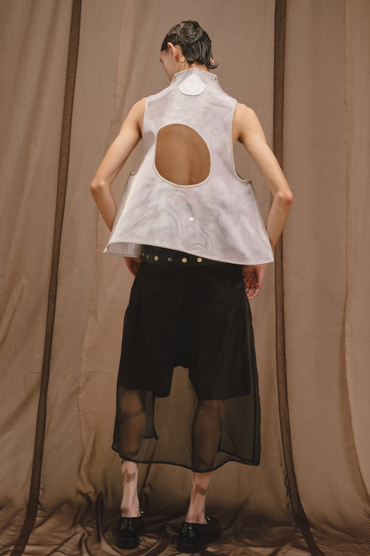 100% Nylon White Zibbon Cropped Cocoon Shirt