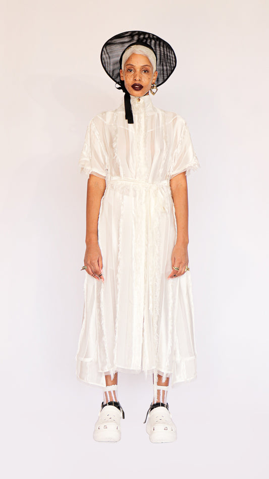 MANDARIN COLLAR SILK ORGANZA KIMONO TOP