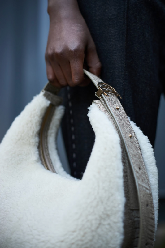 Ecru Reclaimed Raw Rough Silk Trapeze Pants with Ostrich Shin details
