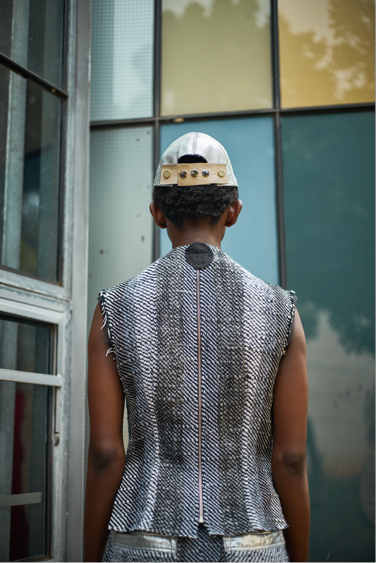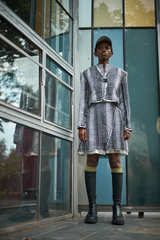 Cape Tweed Arctic Land, Cropped V-Jacket in Local Wool