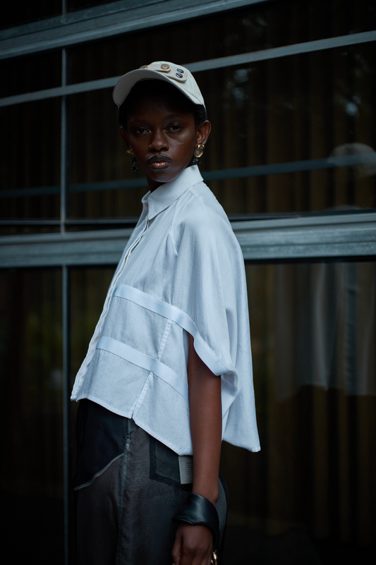 Nuvola Bianca Cropped Cocoon Shirt in Silk Cotton