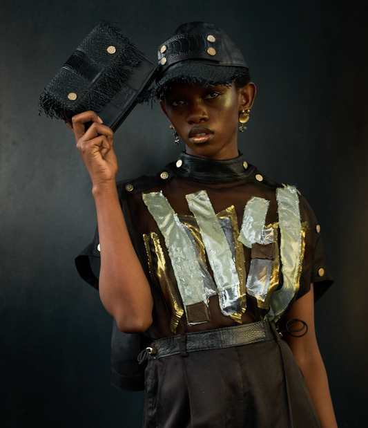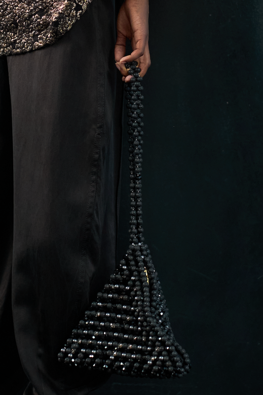Black Napa Leather and Black Vintage Raffia Belt Bag