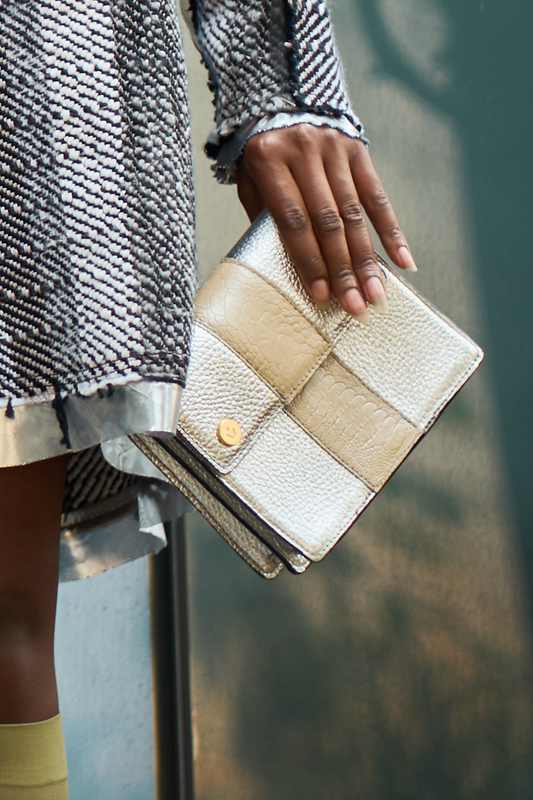 Silver Metallic Bovine Leather Belt Bag with Pearl Ostrich Shin Detail