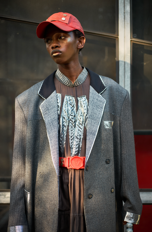Sculpted Graphite Signature Qipao Maxi Dress in Silk Cotton