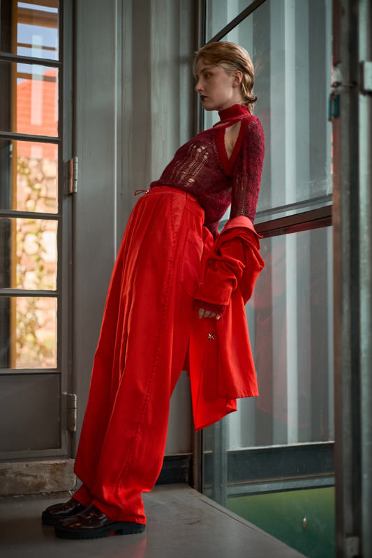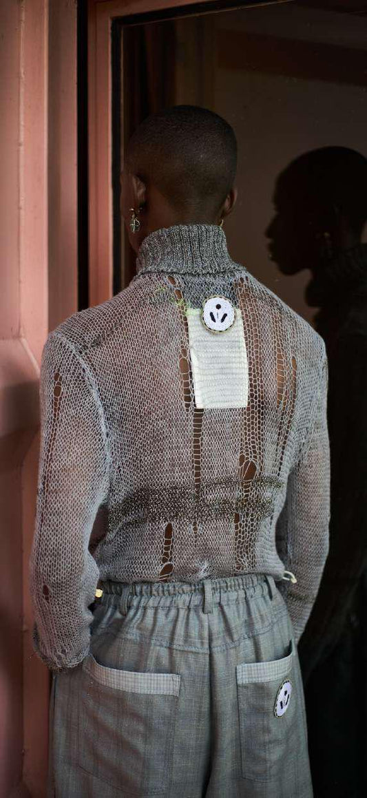 Artisanal 100% South African Merino Wool Silver Ladder Knitted Poloneck Top