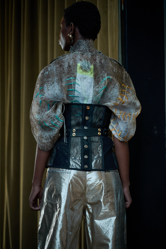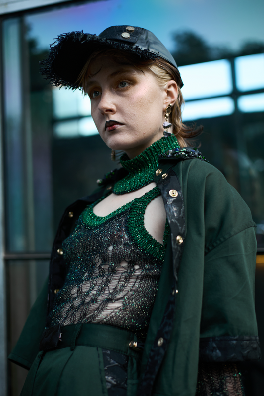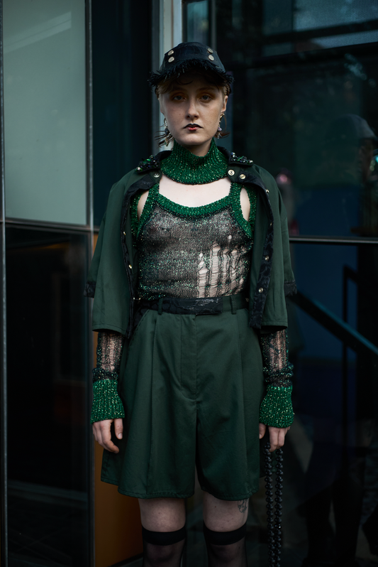 Emerald Gemstone Beaded Cropped Shirt in Egyptian Cotton