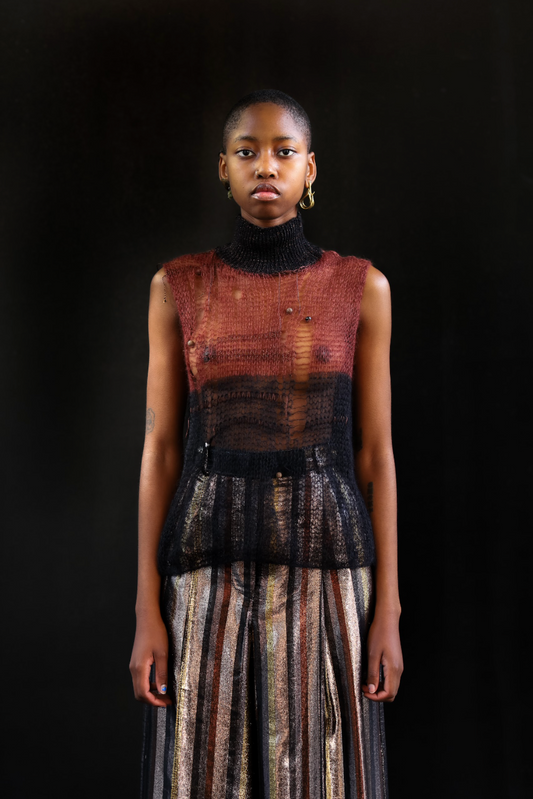Black and Bronze Artisanal Mohair knitted turtleneck top
