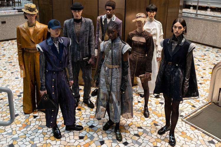 Purple Cashmere & Silk Lame Patchwork Double Breasted Jacket Long with Ostrich Shin Collar