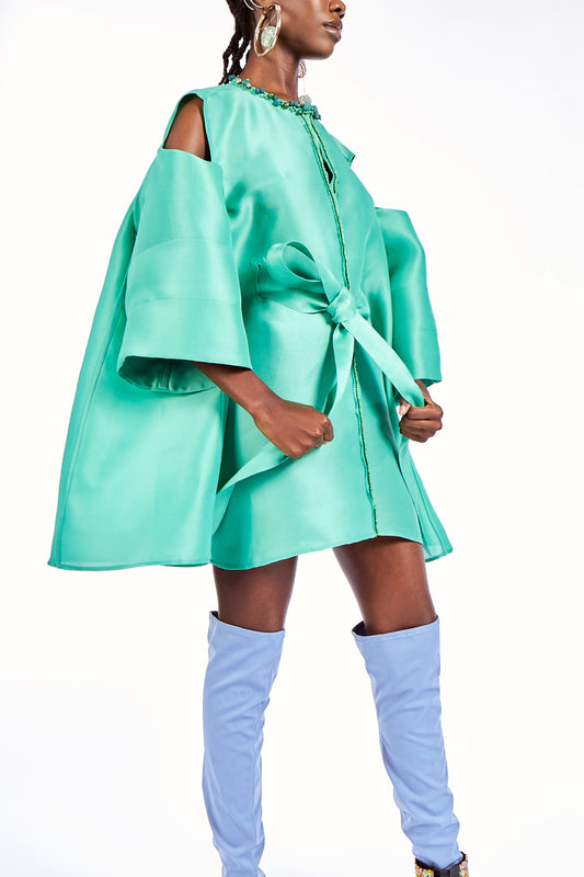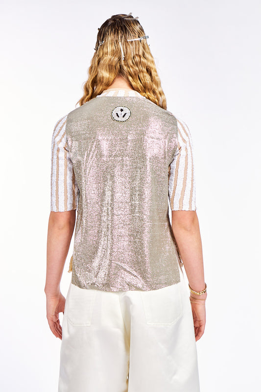 Radiating Jewel Tailored Jacket with Detachable Sleeves in Silk Lamé